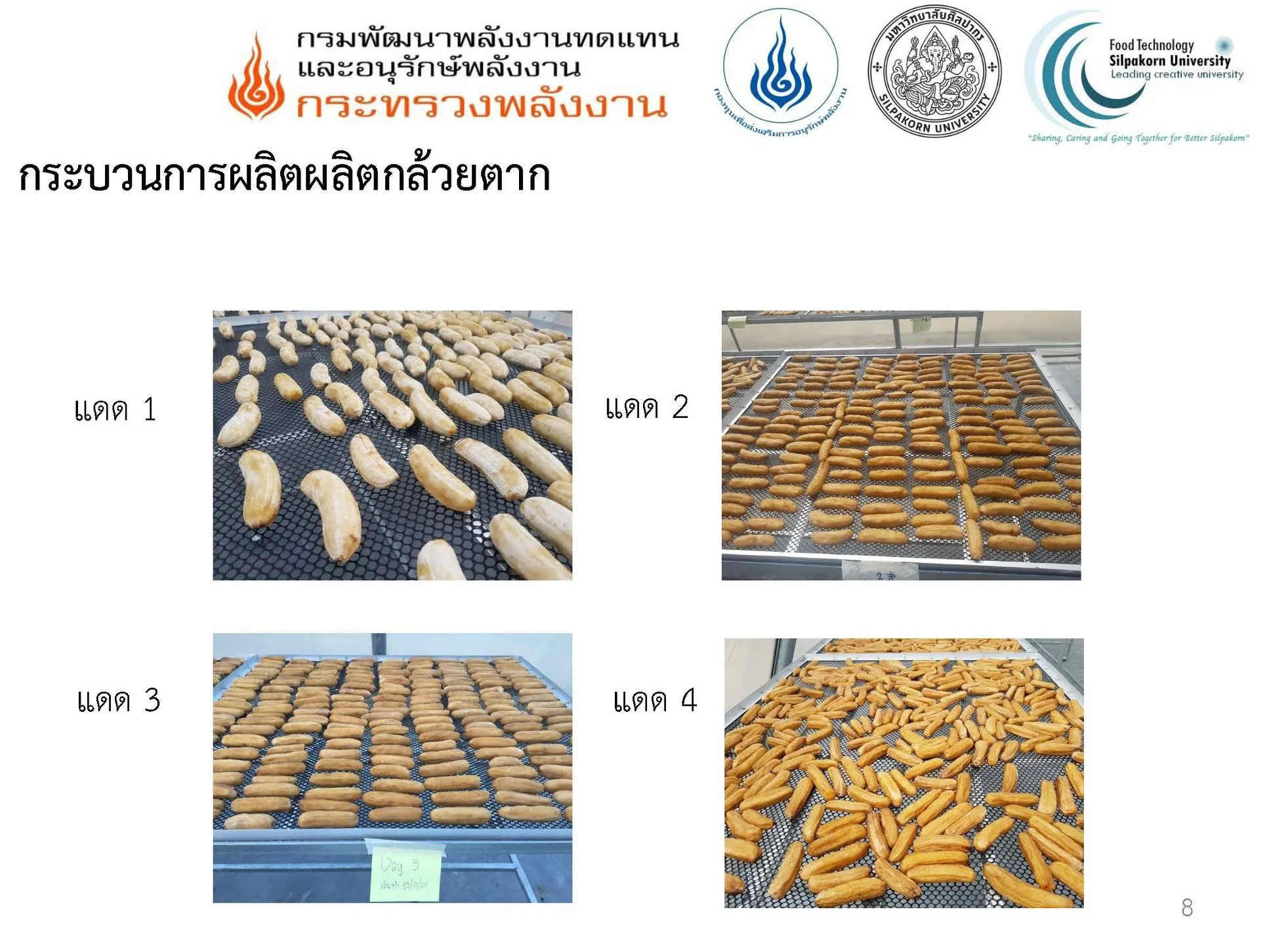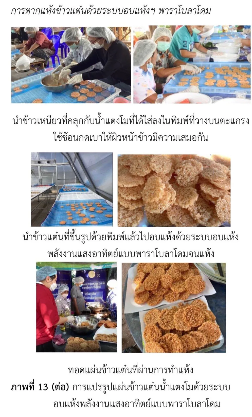 2.ผึ่งบนตะแกรง เข้าระบบอบแห้งพลังงานแสงอาทิตย์ 40-60 องศาเซลเซียส ระยะเวลาขึ้นอยู่กับแสงแดด