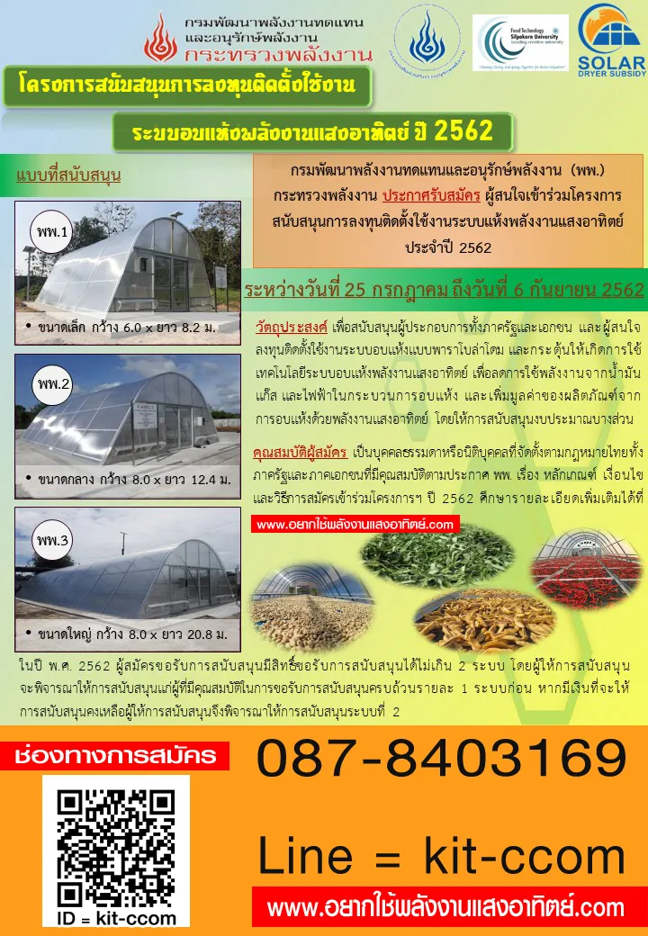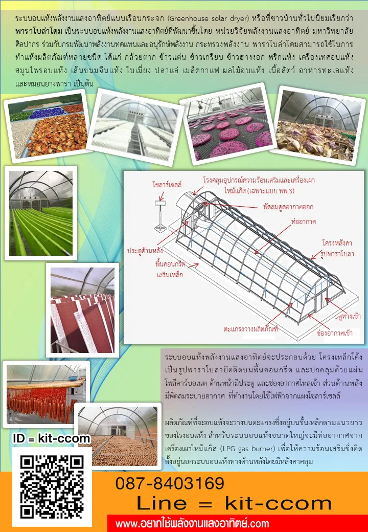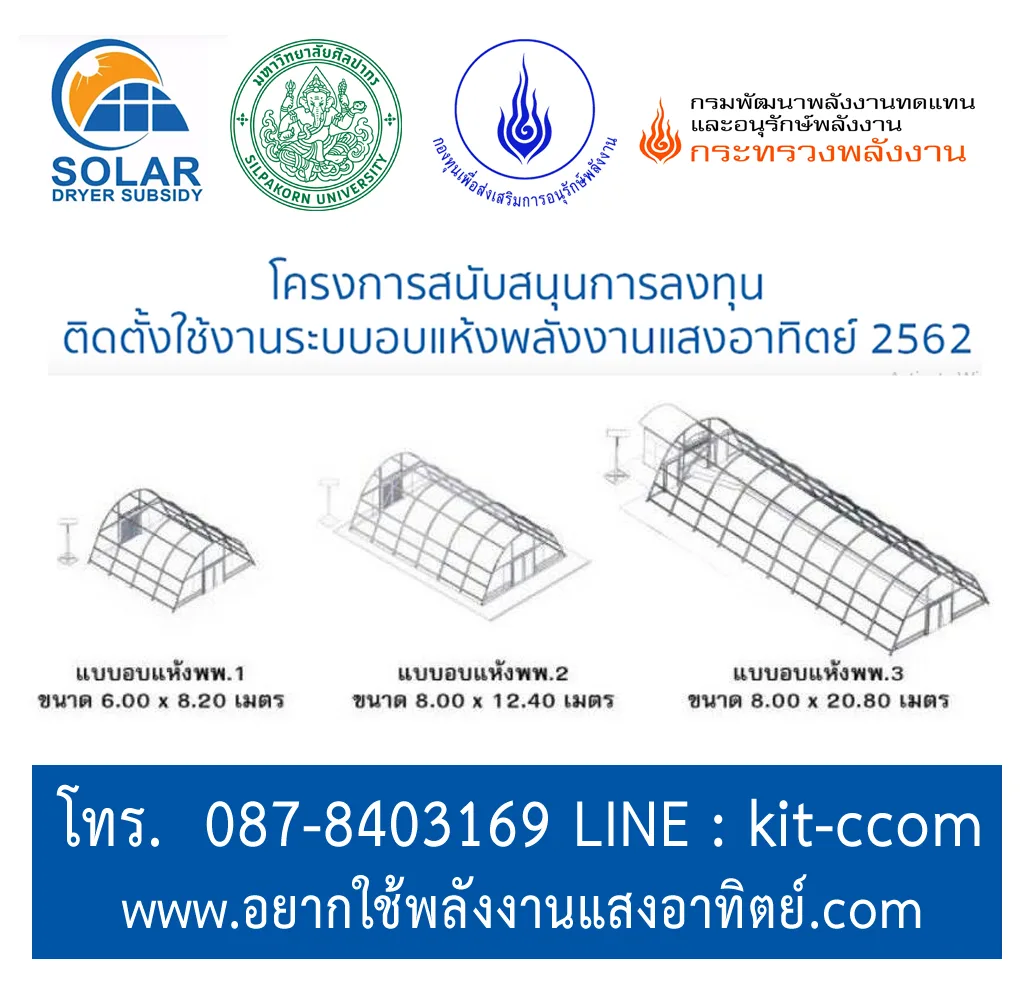 ภาคเอกชน สามารถขอติดตั้งระบบอบแห้งพลังงานแสงอาทิตย์ได้ที่ไลน์ kit-ccom โทร. 087-8403169