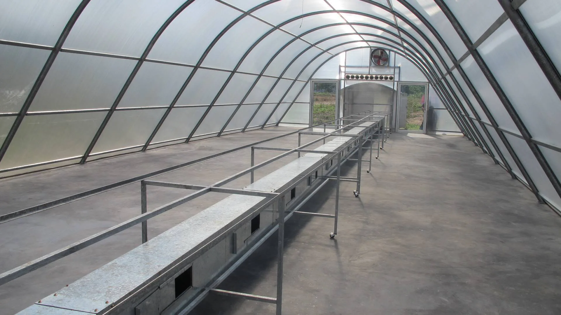 โรงตากแห้งพลังงานแสงอาทิตย์ พร้อมระบบพัดลมดูดความชิ้นออกจากโรงอบ ได้มาตรฐานตามแบบ